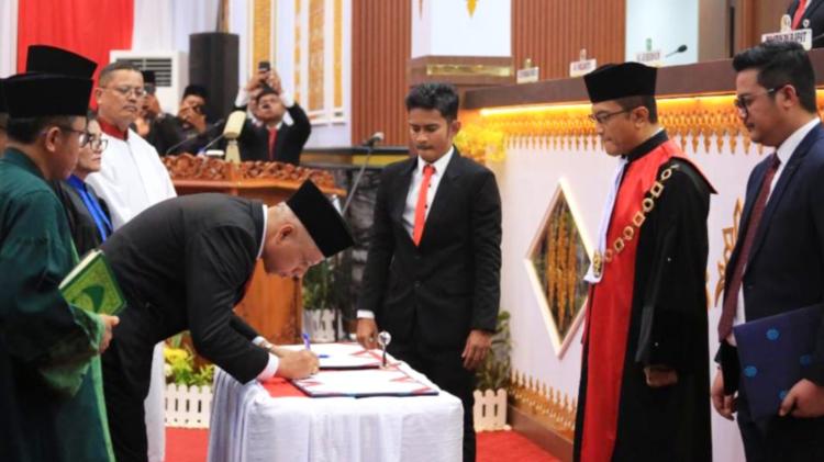 Prosesi acara pelantikan berjalan dengan khitmat langsung dipimpin Ketua Muhamad Sabarudi DPRD pada masa bakti 2019-2924