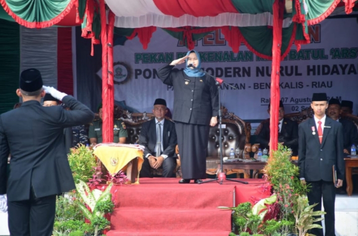 riau-bangkit.com | BANTAN – Bupati Bengkalis Kasmarni menjadi Inspektur Apel Tahunan sekaligus Pembukaan Tahun Pelajaran Baru Pondok Modern Nurul Hidayah (PMNH) Desa Pasiran, Kecamatan Bantan. Rabu, 7 Agustus 2024.