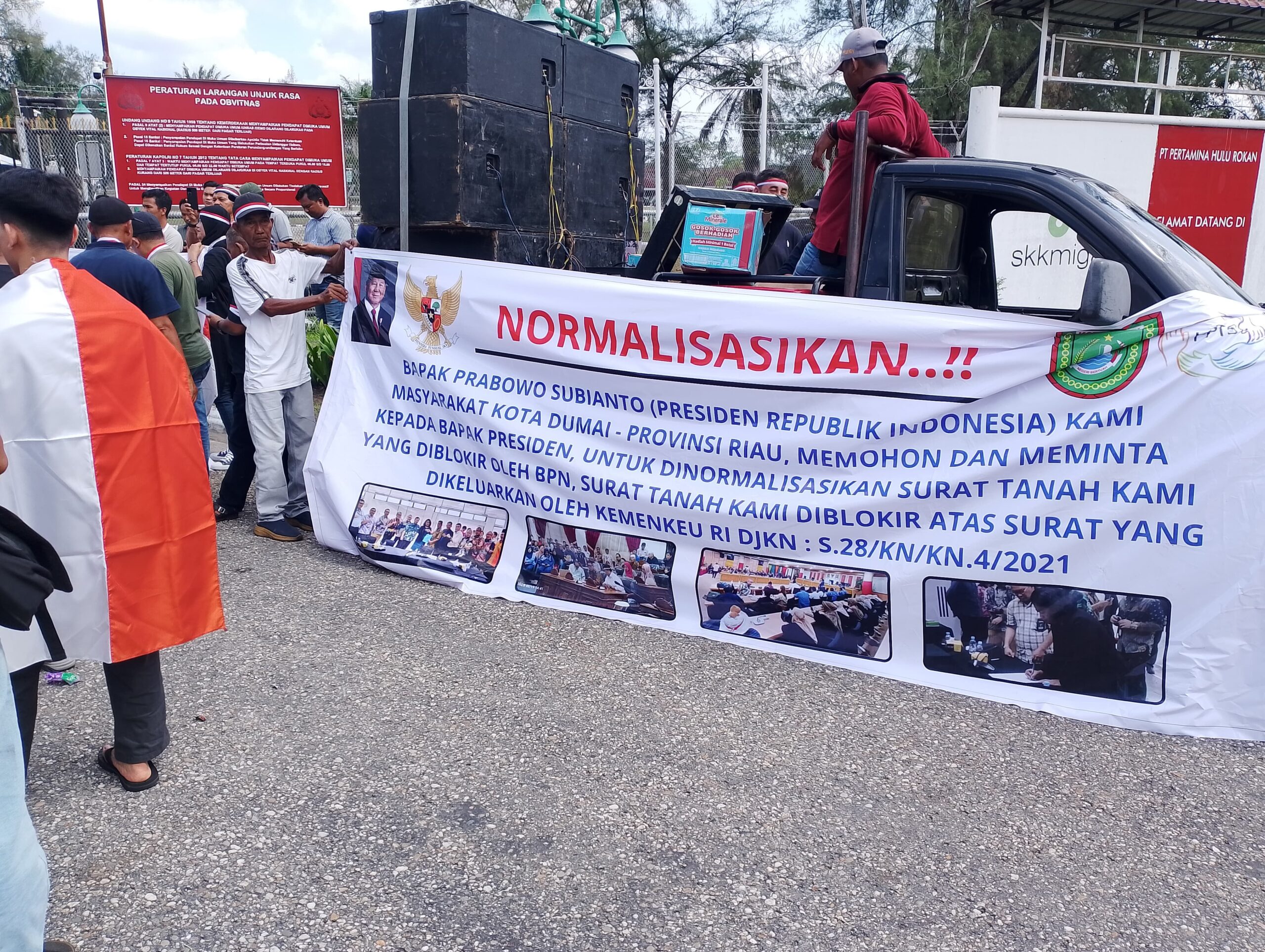 Aksi unjuk rasa menuntut hak atas tanah masyarakat yang sudah memiliki Surat Sertifikat yang mana saat ini di klaim pihak PT Pertamina Hulu Rokan (PHR) kota Dumai adalah milik nya.