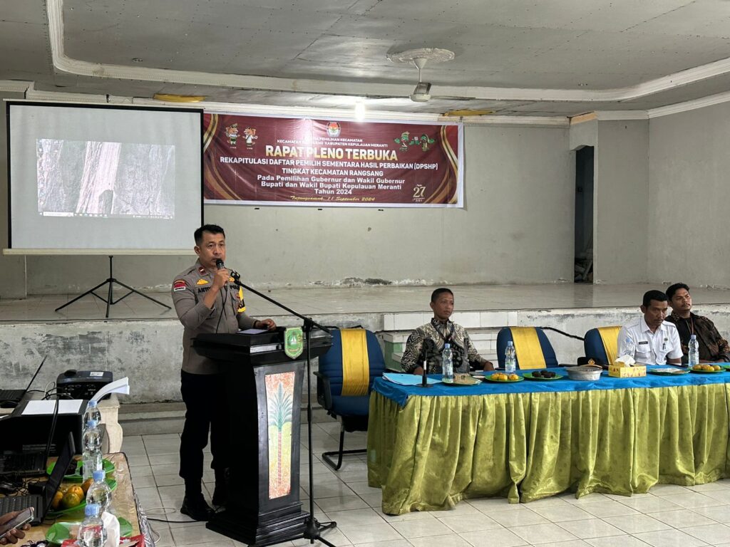 Kapolsek Rangsang Ipda Anton Hilman menyampaikan terhadap Seluruh Penyelenggara Pilkada tahun 2024 Kecamatan Rangsang Agar bekerja dengan sepenuh hati dan bertanggung jawab demi Sukses nya Pemilihan Kepala Daerah yang aman, damai dan sejuk.