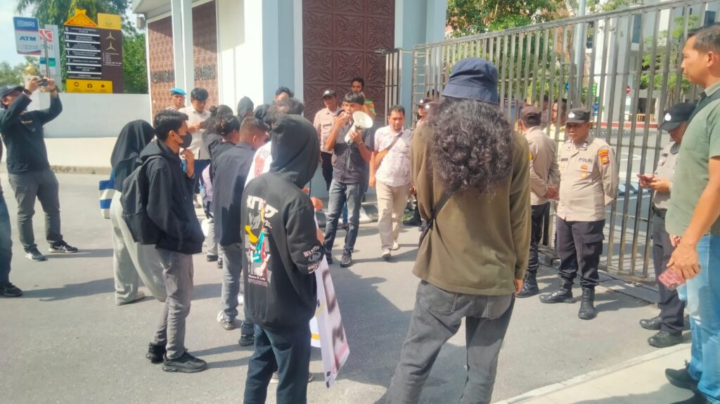 Rentetan aksi unjukrasa terus berlangsung tak habis-habisnya di Kejati Riau, kali ini digelar lagi Kamis (5/9/2024) sekira pukul 15.25 WIB di pintu gerbang Kantor Kejaksaan Tinggi (Kejati) Riau Jalan Sudirman Pekanbaru.
