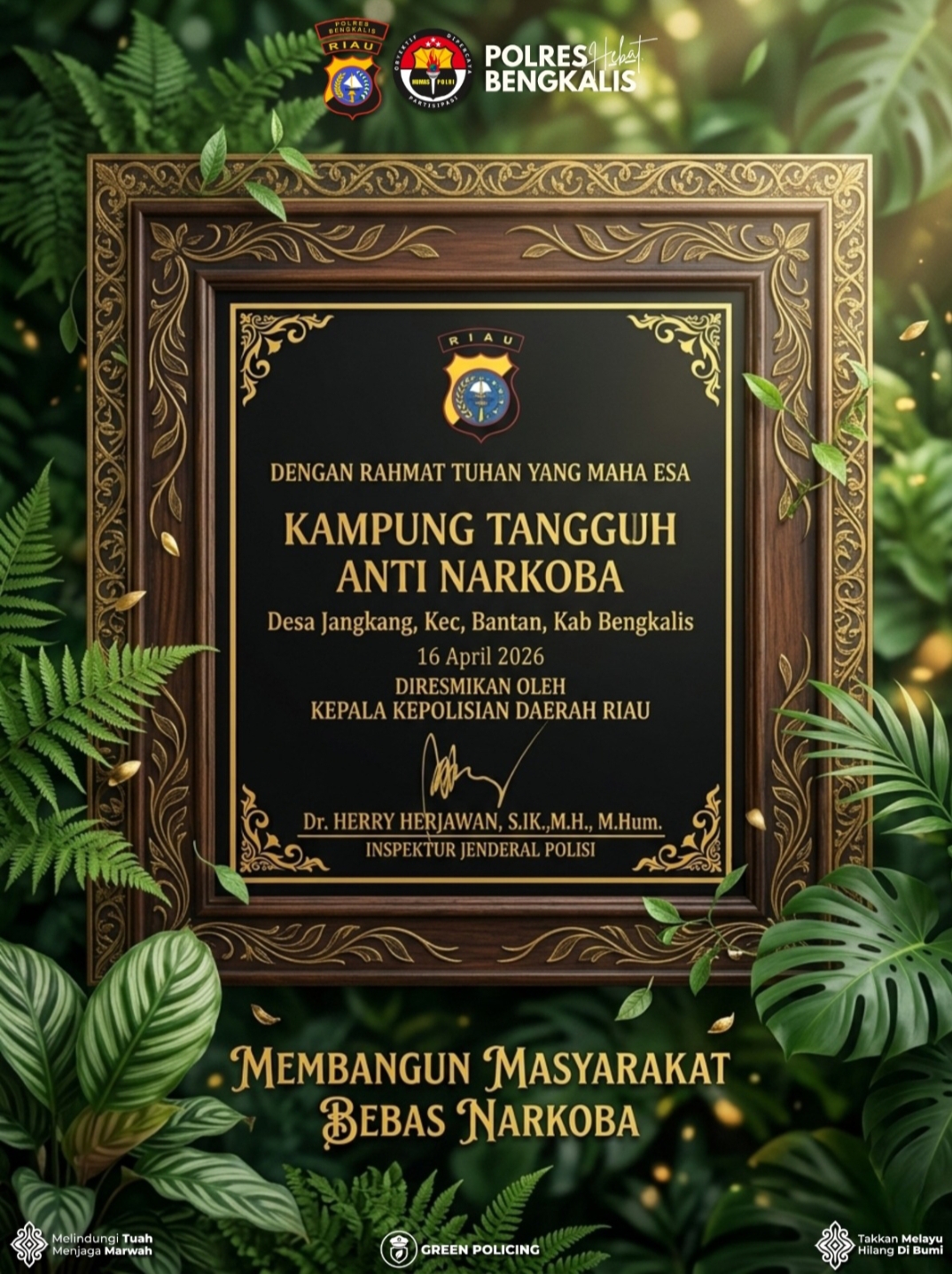 BENGKALIS, RBC – 16 APRIL 2026 Upaya mewujudkan lingkungan bersih dari narkoba di Kabupaten Bengkalis terus diperkuat. Kapolres Bengkalis, Fahrian Saleh Siregar,S.I.K,M.Si menyatakan dukungan penuh terhadap pembentukan Desa Jangkang, Kecamatan Bantan, sebagai Kampung Bebas dari Narkoba.