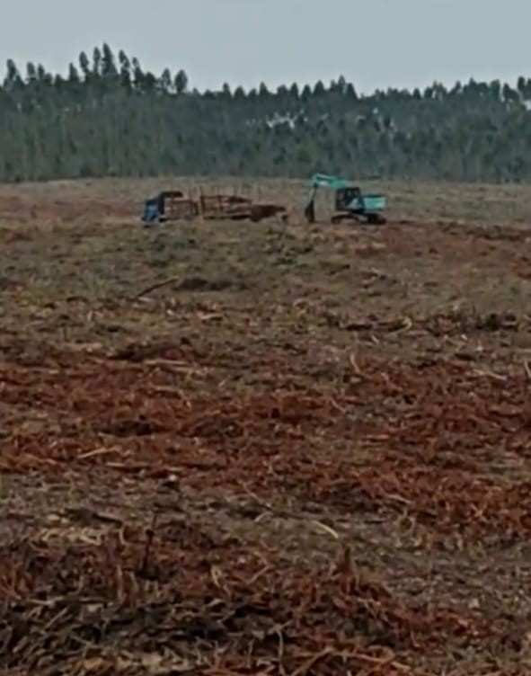 Hasil pantauan di lapangan menunjukkan adanya aktivitas penumbangan yang diduga dilakukan oleh PT Arara Abadi. Di lokasi juga ditemukan jejak aktivitas alat berat dan kayu hasil tebangan.