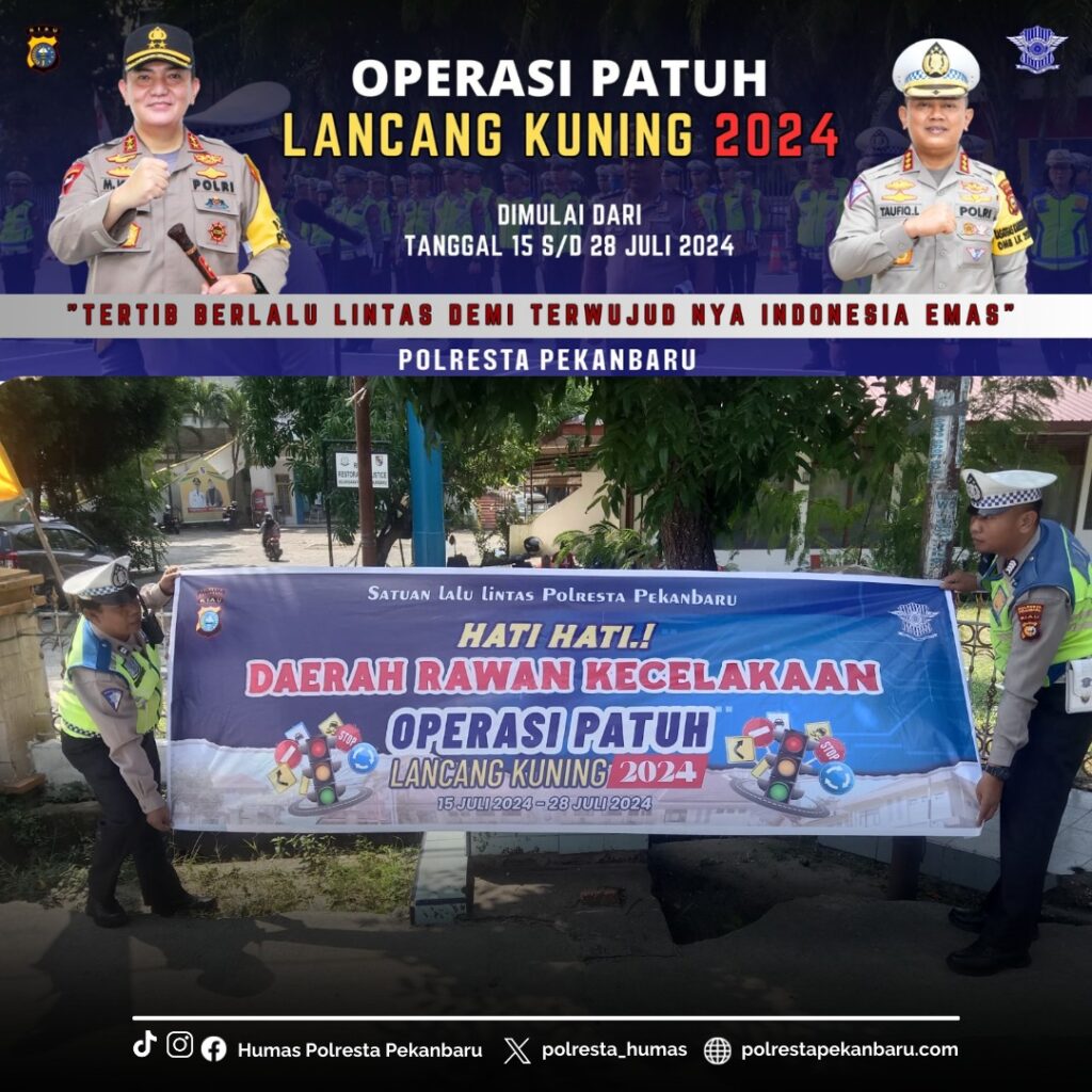 “Dengan kerjasama dari seluruh elemen masyarakat, kami berharap Ops Patuh Lancang Kuning ini tidak hanya meningkatkan kesadaran akan aturan lalu lintas, tetapi juga mengurangi angka kecelakaan di jalan raya,” ujar IPDA Ari Tonika, Kaposko Patuh Lancang Kuning 2024 Polresta Pekanbaru.