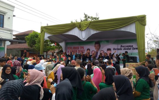 Pekanbaru, RBC - Antusias Masyarakat di Deklarasi Tim Pemenangan Kecamatan (TPK) Bakal Pasangan Calon Gubernur Abdul Wahid dan Wakil Gubernur...