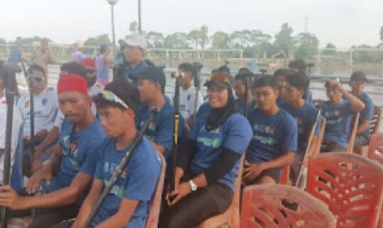 SIAK, RBC - Salah seorang atlet perempuan dayung sampan yang berpartisipasi dalam tim Serindit Boat dari Tanjung Jabung Barat, Jambi,...