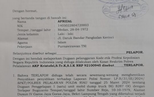 TERKAIT SP3 KASAT RESKRIM,AFRIZAL LAPORKAN DUGAAN PELANGGARAN KODE ETIK Tidak terima laporanya di SP3kan oleh Kasat Reskrim Pelalawan, Afrizal...