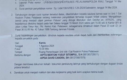MULAI TERBACA TUJUAN KASAT RESKRIM PELALAWAN SP3 KAN KASUS PENGGELAPAN MOBIL Setelah Kasat Reskrim Pelalawan menerbitkan Surat Perintah Penyidikan dengan...