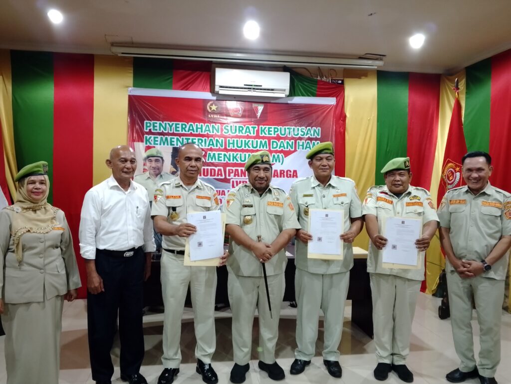PEKANBARU, RBC – Pimpinan Pusat Pemuda Panca Marga (PP PPM) Berto Izaak Doko SH menyerahkan Surat Keputusan Menteri Hukum dan Hak Asasi Manusia Republik Indonesia (SK Menkumham RI) tentang Pengesahan Pendirian Perkumpulan Pemuda Panca Marga Legiun Veteran Republik Indonesia (PPM-LVRI) kepada PD Sumatera Utara, PD Sumatera Barat, dan Provinsi Riau, Senin (26/8/24) di gedung LAM Riau, Jalan di Ponegoro, Pekanbaru, Riau.
