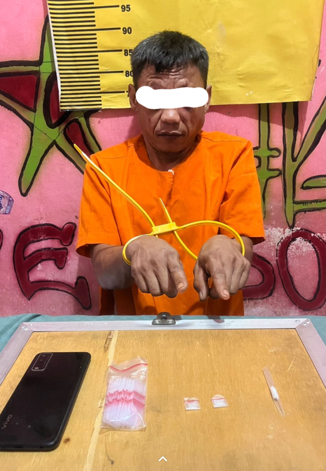 Dari tangan tersangka, petugas berhasil mengamankan barang bukti berupa 2 paket kecil diduga sabu dengan berat bruto 0,52 gram, satu bungkus plastik pack, satu unit handphone, serta satu buah kaca pirex.