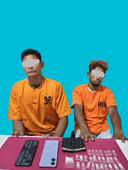 Dua tersangka yang diamankan adalah P S 44 tahun, buruh, warga Desa Rawang Sari, Kecamatan Pangkalan Lesung, dan P, 34 tahun, buruh, warga desa yang sama. Keduanya ditangkap di TKP sebuah rumah kontrakan di SP 5 Jalur 8, Desa Rawang Sari, Kelurahan Pangkalan Lesung, Kabupaten Pelalawan pada Sabtu, 18 April 2026 sekira pukul 17.00 WIB.