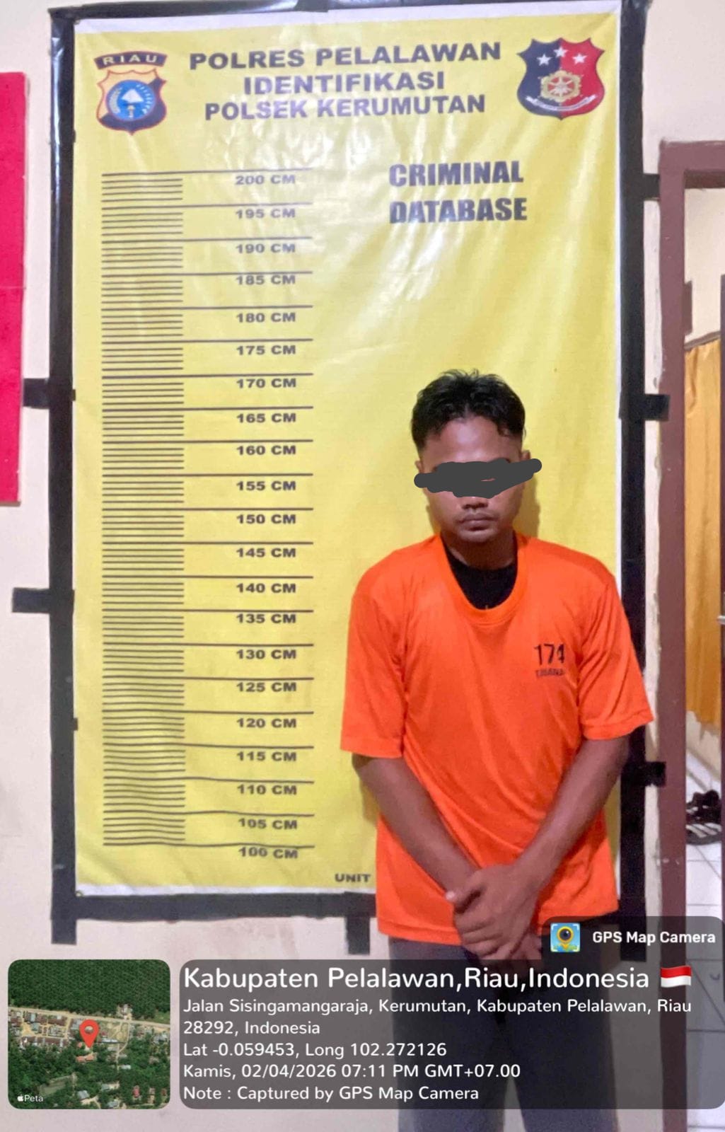 PELALAWAN RBC – Jajaran Polsek Kerumutan berhasil menggagalkan aksi pencurian buah kelapa sawit di areal perkebunan milik masyarakat di Desa Tanjung Air Hitam, Kecamatan Kerumutan, Kabupaten Pelalawan, pada Rabu (1/4/2026). Seorang tersangka berinisial DE alias Didit (21), yang berstatus sebagai mahasiswa, kini telah diamankan pihak kepolisian.