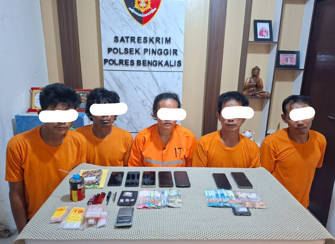 Kapolres Bengkalis AKBP Fahrian Saleh Siregar, S.I.K., M.Si melalui Kapolsek Pinggir AKP Bayu Ramadhan Effendi, S.T.R.K., S.I.K., M.H., menjelaskan bahwa dalam pengungkapan tersebut, pihaknya berhasil mengamankan tiga orang tersangka berinisial AJSH (24), TES (39), dan JS (23).