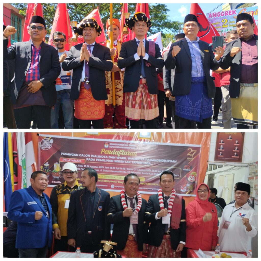 Pantauan media, Pasangan Calon Walikota dengan Pakaian Adat Kebesaran Angkola didampingi para Ketua dan Pengurus Partai dan partai Pendukung pasangan Calon Walikota Tahun 2024 bertolak berjalan kaki dari Posko Pemenangan dari Jl.Kenanga Padangsidimpuan menuju Kantor KPU pada pukul 10.00 WIB.