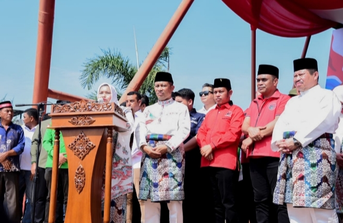 Dihadapan ribuan masyarakat, terlebih dahulu Kasmarni mengucapkan terima kasih kepada 11 parpol yang telah mendukungnya maju kembali dalam kontestasi demokrasi di Kabupaten Bengkalis.