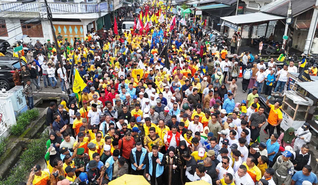 Ribuan relawan dan simpatisan tumpah ruah mengantarkan pasangan calon Bupati dan Wakil Bupati Rohil, Afrizal Sintong – Setiawan (ASET) mendaftar ke KPU Kabupaten Rokan Hilir