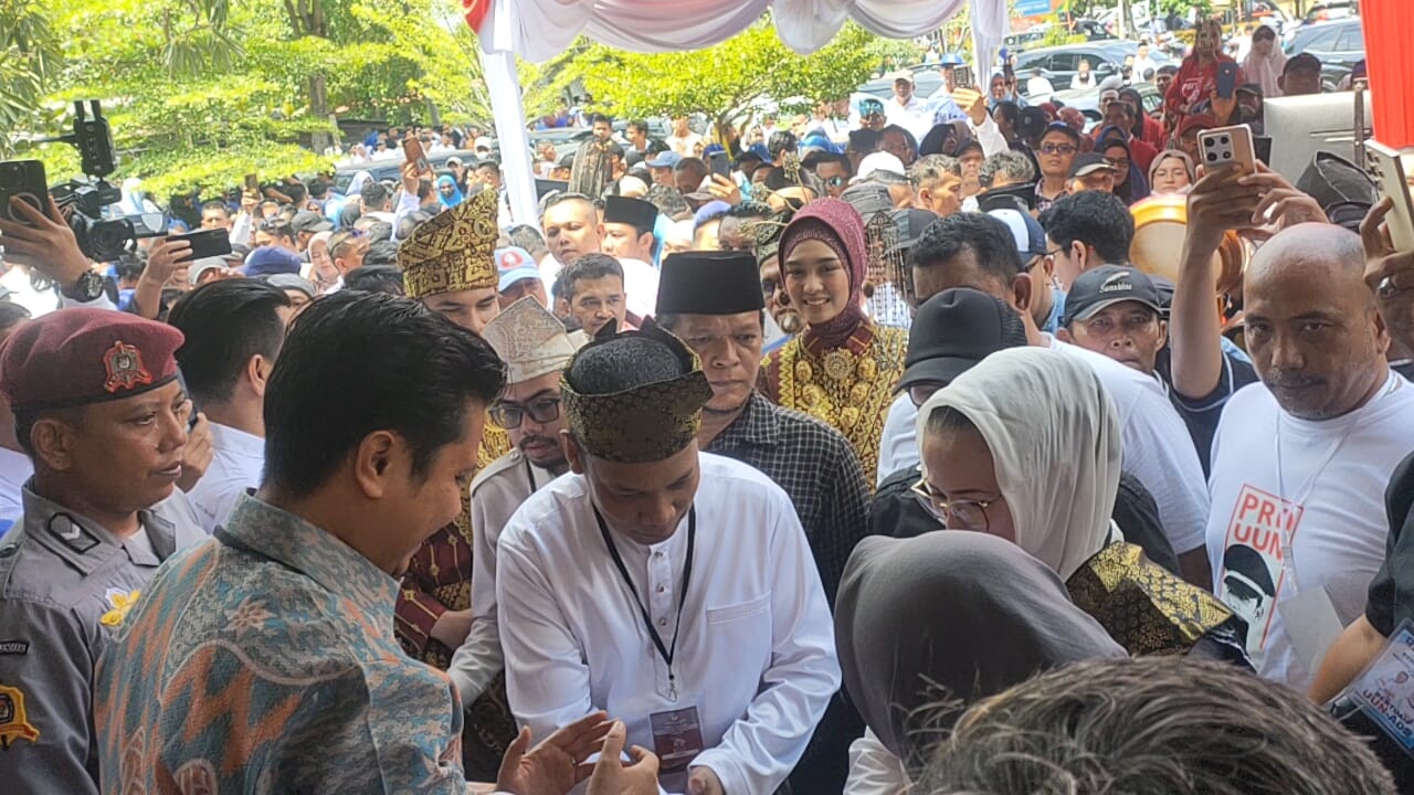 PEKANBARU, RBC – Pasangan calon (Paslon) Walikota dan Wakil Walikota Pekanbaru, Muflihun-Ade Hartati secara resmi mendaftar ke KPU kota Pekanbaru. Pasangan ini merupakan pasangan kedua yang mendaftar ke KPU Pekanbaru, sebelum pasangan Ida dan Kharisma yang sudah terlebih dahulu mendaftar kan diri ke KPU Pekanbaru, Kamis (28/8/24), jalan Datuk Setia Maharaja ( Parit Indah).
