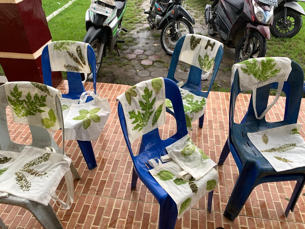 Pelatihan ini tidak hanya berupa teori, tetapi juga diikuti dengan praktek langsung ibu – ibu PKK Desa Alai Selatan di ajak untuk mencoba teknik ECOPRINT menggunakan daun mangrove.