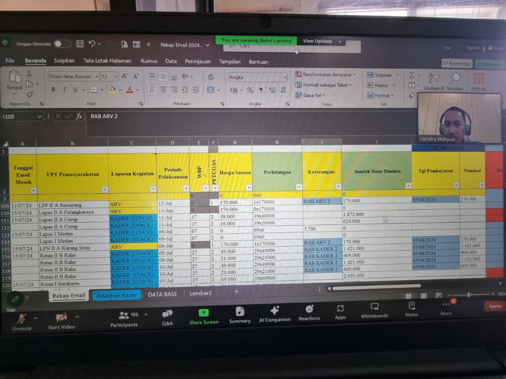 PEKANBARU, RBC – Tim medis Lapas Kelas II A Pekanbaru mengikuti kegiatan monitoring dan evaluasi kegiatan GF TB HIV yang diselenggarakan oleh bagian kesehatan dan perawatan ( Keswat) narapidana Direktorat Jenderal Pemasyarakatan secara virtual melalui aplikasi zoom. Bertempat di ruang klinik dan pelayanan kesehatan warga binaan pemasyarakatan. Senin (09/09/24).