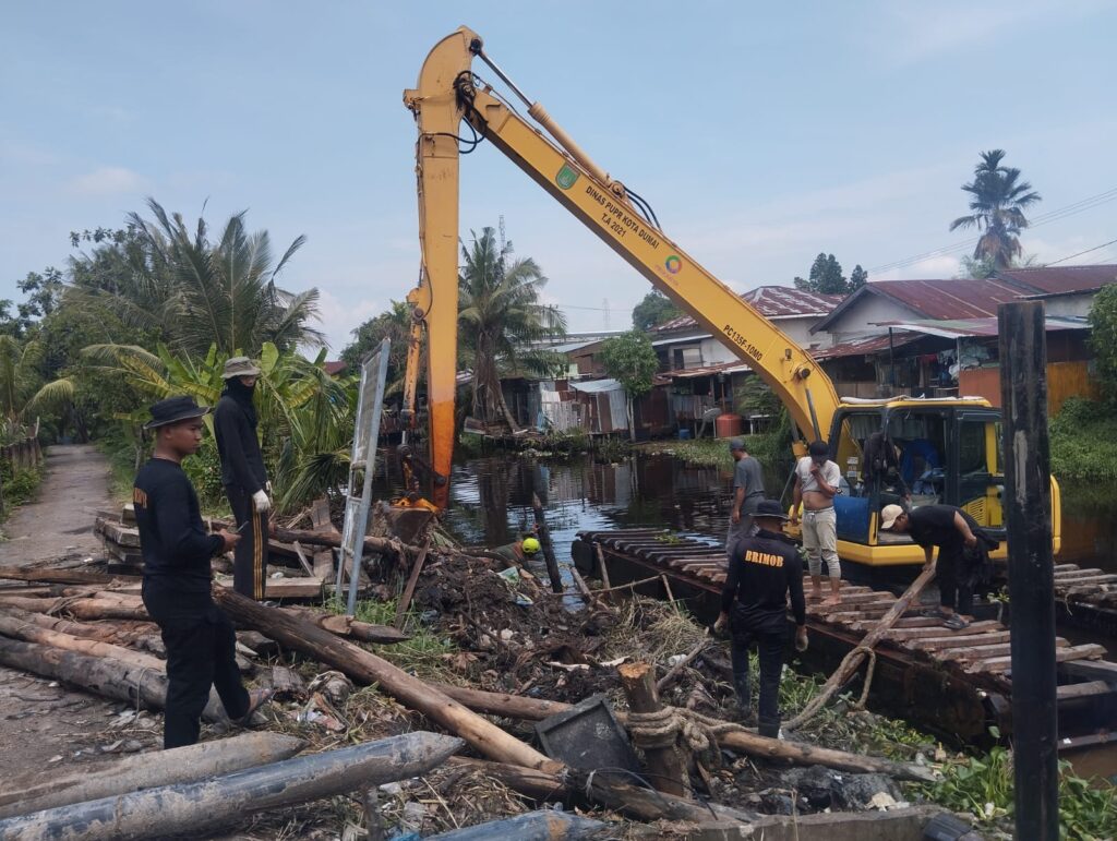 pengerjaan di titik ini melibatkan kolaborasi antara 3 personel Polres Dumai, 5 personel BKO Sat Brimob, dan dibantu oleh 4 orang relawan setempat.